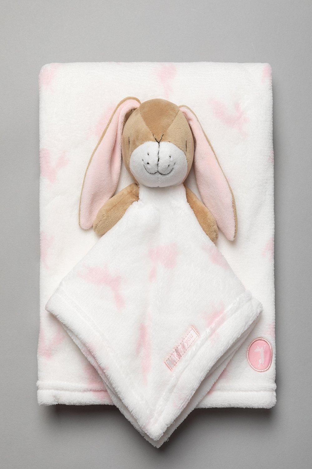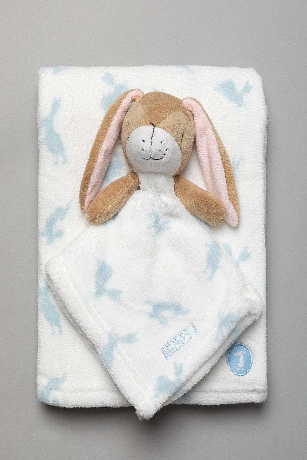 Grey Plush Bunny Toy, Blanket & Comforter Baby Gift Set
