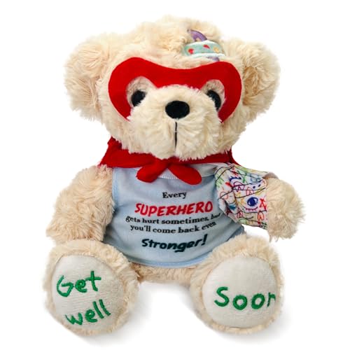 baby comforter Get Well Soon Teddy Bear Plush Toy, Superhero Bear Stuffed Animal with Broken Arm, Recovery Get Well Soon Gift for Kids Adult – Thoughtful After Surgery or Get Better Soon Present