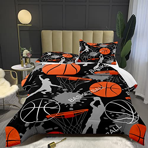 Bodhi Sports Comforter Twin Size Basketball Comforter Set for Teen Boys,Kids,Sports Boys Bedding Set with Pillowcases,Teen Boys Comforter Twin Size,Basketball Player Bedding
