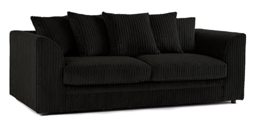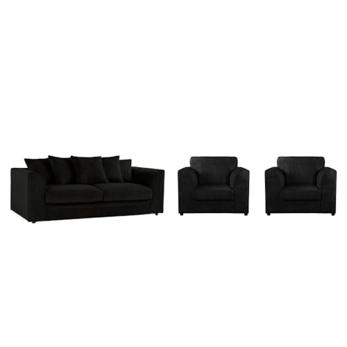 Jumbo Cord 3+2 Seater Sofa|Black Dual Arm Couches|Comfy Corner Settees & Arm Chair|Scatter Back Settees Suites|3 Piece Sofa Suite for Living Room (3 Seater)