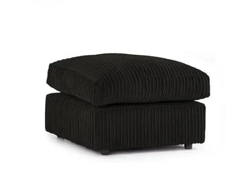 Jumbo Cord Settee - Black 3+1+1 Seater Sofa Set - Modern 3+1 Seated Suites & Footrest - Comfy Arm Chair - Upholstered Scatter Back Couches - Essential Large Size Footstools for Living Room (Footstool)