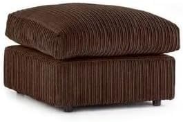Jumbo Cord Settee - Chocolate Brown 3+1+1 Seater Sofa Set - Modern Suites & Footrest - Upholstered Scatter Back Couches - Comfy Arm Chair - Essential Large Size Footstool for Living Room (Footstool)