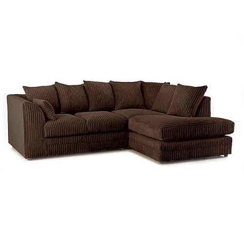 5,4,3,2&1 Seated Couches, 3+2 Settee Sofa Set, 4-5 Seater L Shape Left & Right Hand Corner Sofa, Comfy Swivel Seat-Arm Chair and Footstool, Dark Brown Jumbo Cord Sofas for Living Room (RH 5 Seater)
