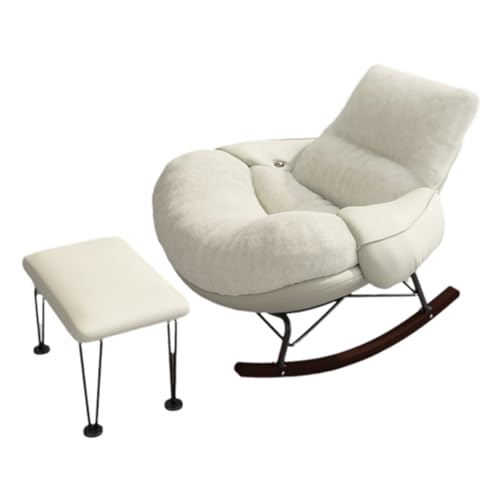 Rocking Recliner Chair Faux Leather + Plush Fabric, Solid Wood Base, Wide Seat, Comfy Reading Chairs for Adults, Rocking Chair, for Bedroom, Living Room, Garden and Courtyard(White)