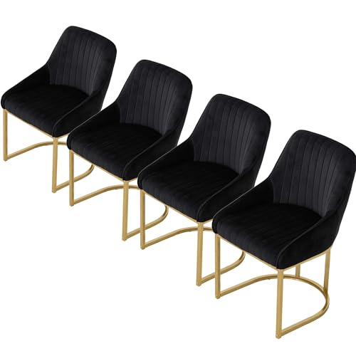 Warmiehomy Black Dining Chairs Set of 4 Luxury Upholstered Velvet Kitchen Dining Room Chair with Comfy Backrest and Gold Frame Leg, Comfy Accent Chairs for Home Office Bedroom Living Room