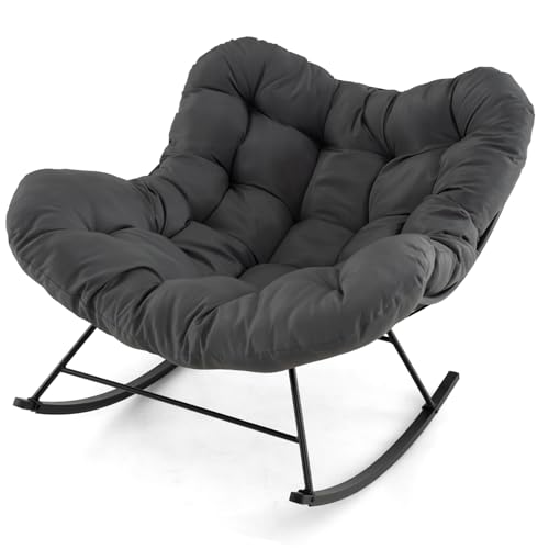 Wizoowip Rocking Chair for Adults, Indoor Outdoor Patio Rocking Chair, Garden Lounge Chairs with Oversized Cushion, Indoor Recliner Wide Comfy Chairs for Living Room, Bedroom Reading Grey
