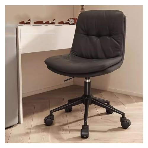 YOUNUOKE Armless Office Chair Comfy Adjustable Desk Chair for Home with Wheels Modern Faux Leather Computer Swivel Chairs Upholstered Vanity Chair with Back(Black)
