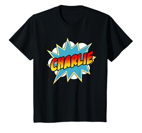 Kids Boys Charlie Comic Book Superhero Name T-Shirt