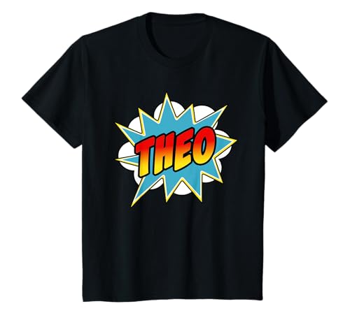 Kids Boys Theo Comic Book Superhero Name T-Shirt