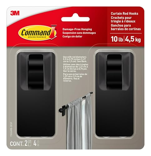 Command Curtain Rod Hooks [Removable]: 2 Hooks (Matte Black) / 2-Hooks