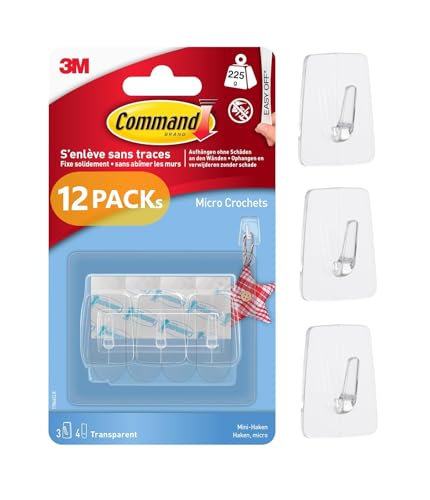 Command Small Clear Hooks, 12-Pack (36 Hooks Total) with 48 Adhesive Strips, Transparent – Indoor Use – Holds up to 225g – Damage-Free Hanging