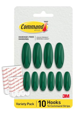 Command Medium Designer Hooks, Rosemary Green, 4 Hooks 6 Strips – Christmas Décor Hanging, Damage-Free Adhesive, No Tools Needed, for Stockings, Wreaths & Seasonal Home Decorations, Holds up to 1.3 kg