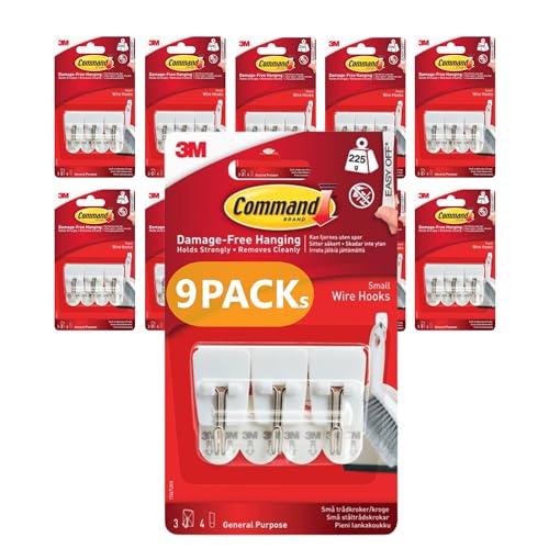 Command Small Wire Hooks, White, 9-Pack (27 Hooks Total) with 36 Adhesive Strips - Suitable for Hanging Kitchen Utensils up to 225 g - Damage-Free Hanging