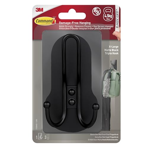 Command XL Triple Hook 17038MB-1-UKN, Matte Black, 1 Hook+ 3 Strip/Pack