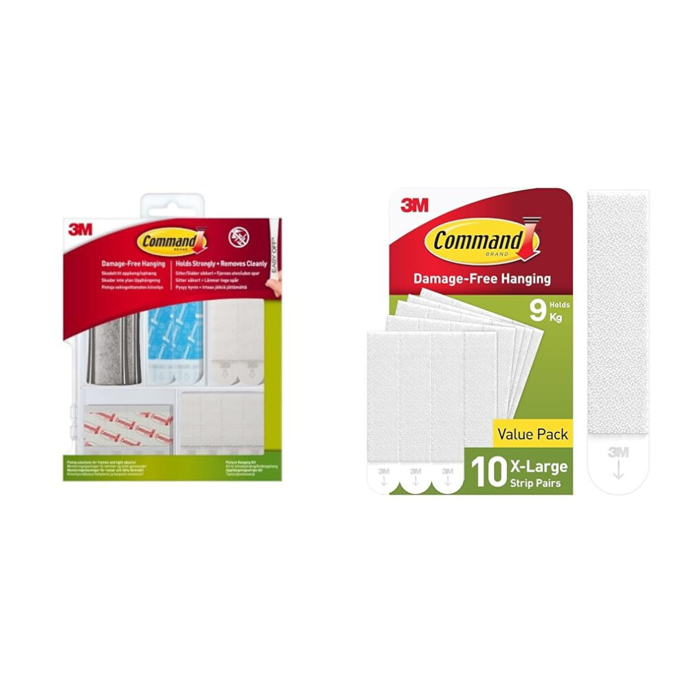 Command Picture Hanging Kit, Assorted Adhesive Strips and Hangers & Picture Hanging Strips, White, X-Large, 10 Strip Pairs - for Pictures, Frames, Mirrors