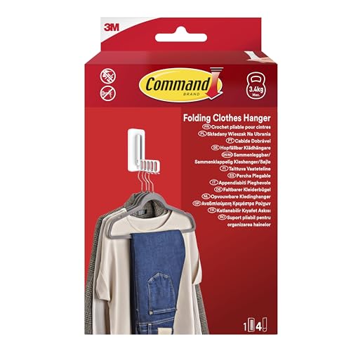 Command Folding Clothes Hanger 17029-WHI-1-EU, White, 1 Hanger + 4 Strip/Pack