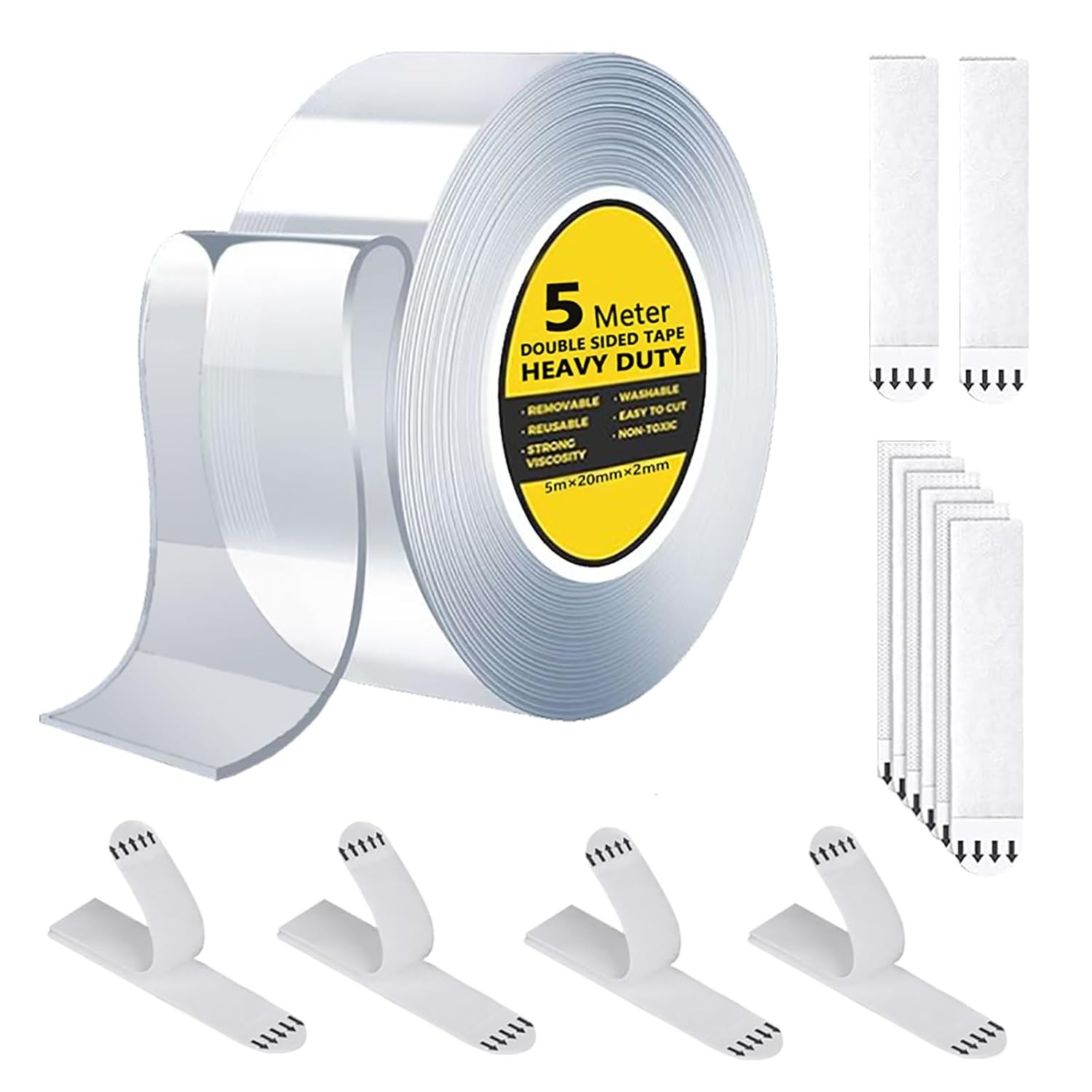 Double Sided Tape Heavy Duty(5.0m * 2.0cm*2mm Command Strips 8-Pairs(16Strips