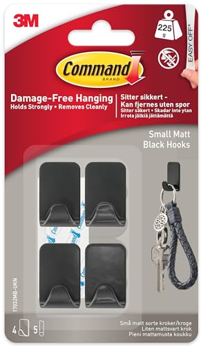 Command Small Metallic Hook, Black, 4 Hooks, 5 Adhesive Strips - Indoor use - Damage Free Hanging