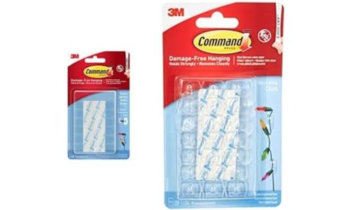 Command Mini Clear Refill Strips 17020CLR & 17026CLR Decorating Clips, Pack of 20 Mini Hooks and 24 Small Adhesive Strips, Transparent - Hanging Clips for Decorations and Fairy Lights, Wall Adhesive