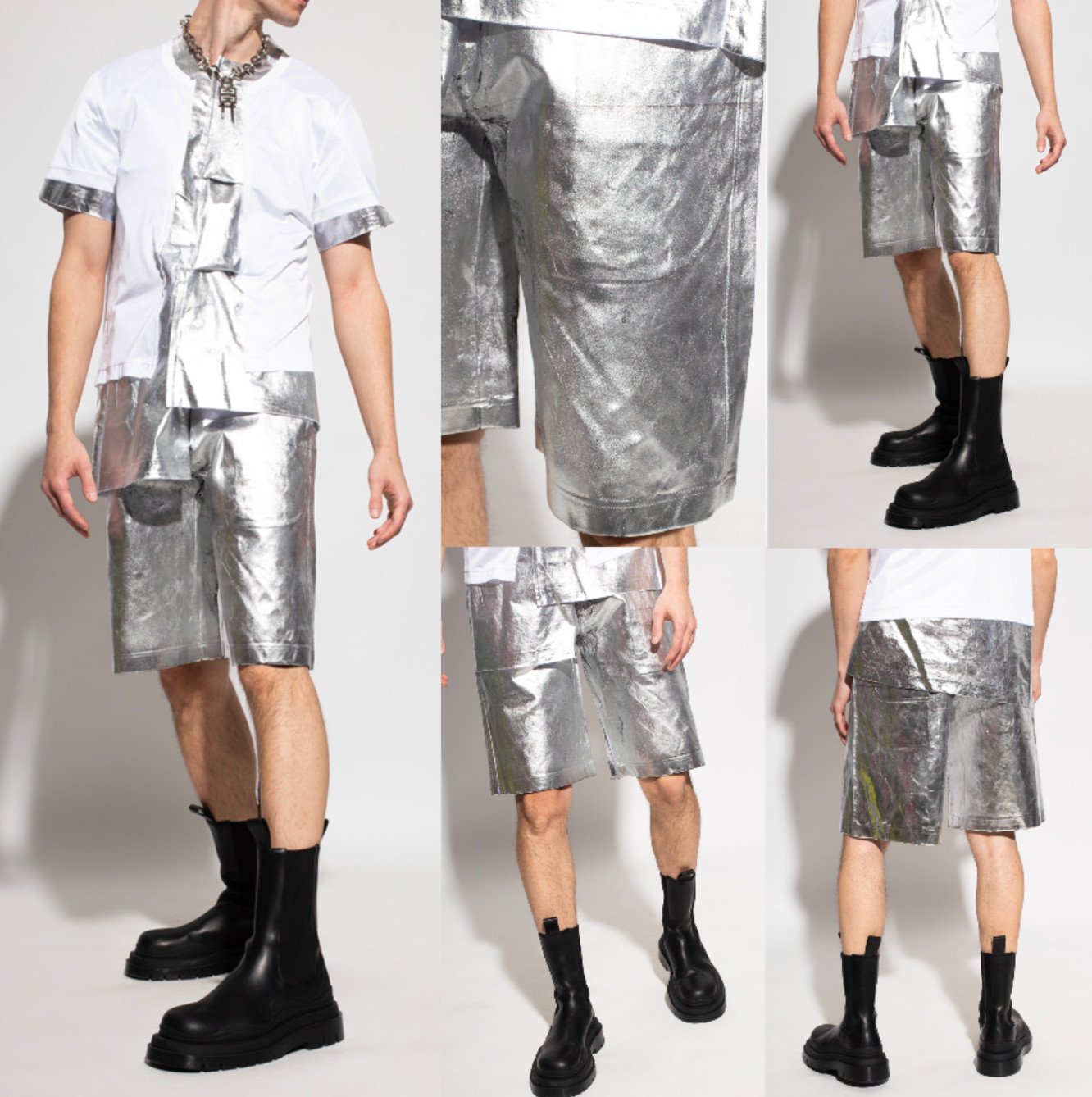 Comme Des Garçons Homme Plus Distressed Silver Foil Shorts Pants Trousers S