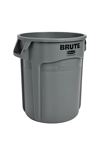 Rubbermaid Commercial Products BRUTE Round Heavy-Duty Waste Bin 76 L Grey – Outdoor Rubbish Container for Landscaping, Construction, Catering, Warehouses, and Office Use – FG262000GRAY