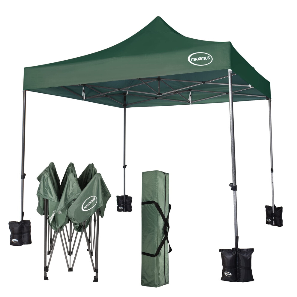 MAXIMUS HEAVY DUTY POP UP GAZEBO 3m x 3m COMMERCIAL MARKET STALL WITH 4 WEIGHT BAGS (No Walls, Green)