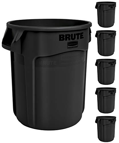 Rubbermaid Commercial Products 1926827 Brute Heavy-Duty Trash/Garbage Can, 10 Gallon, Black (Pack of 6)