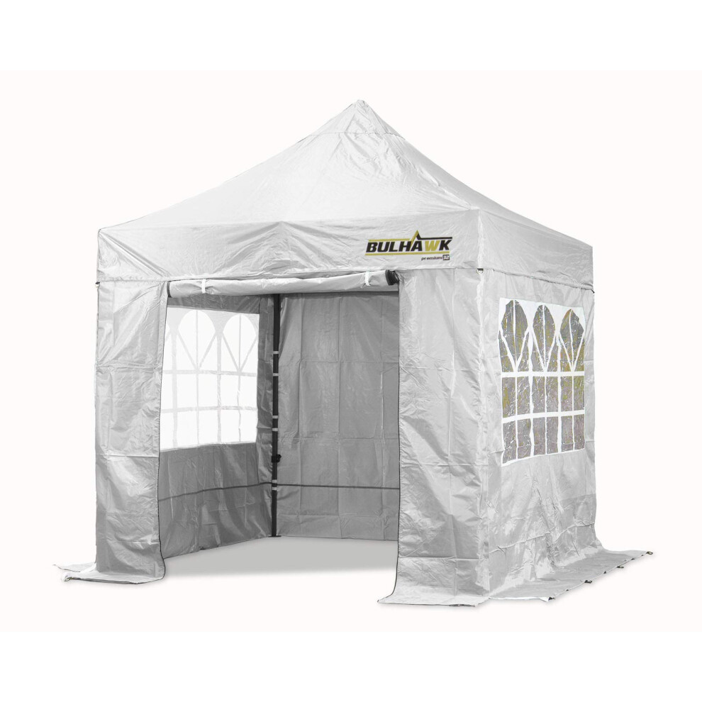 Bulhawk? 2.5m x 2.5m Premium 32 Commercial Grade, Heavy Duty Pop Up Gazebo with Four Sidewalls and Wheeled Carry Bag (White)