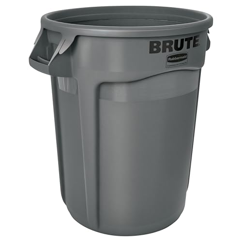 Rubbermaid Commercial Products BRUTE Round Rubbish Bin 121 L Grey – Heavy-Duty Bin with Venting Channels for Home, Garage, Construction Sites, Outdoors and Driveway – FG263200GRAY