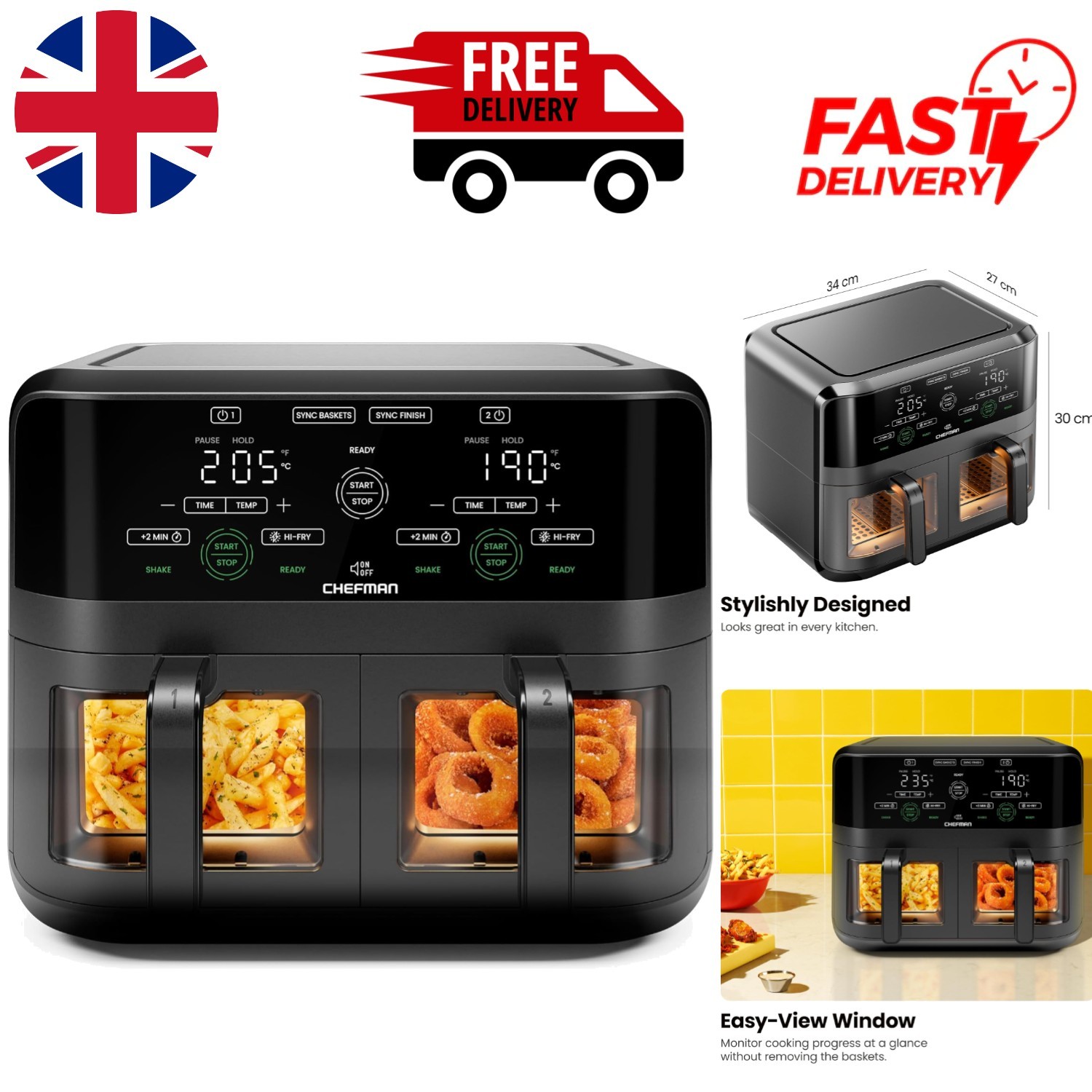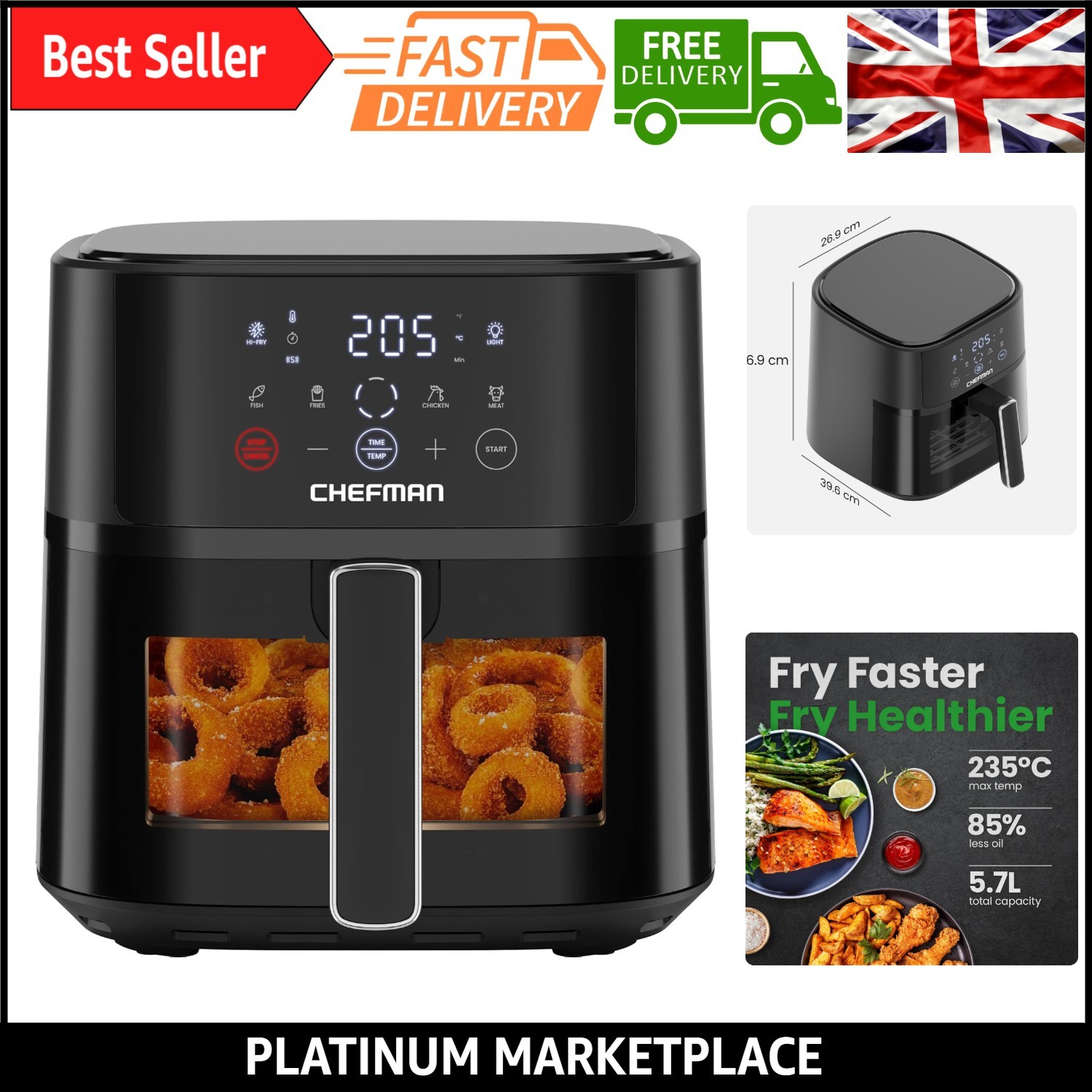 Chefman Air Fryer – 5.7L Compact Airfryer for Quick, Easy Meals, Features Hi-Fry Technology for Extra Crisp, Easy-View Window, Touch Controls with 4 Presets, Nonstick & Dishwasher Safe Basket - Black