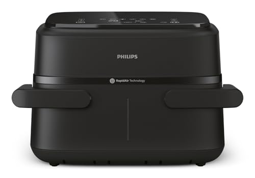 Philips Dual Basket Airfryer 1000 Series - 7.1L Capacity, RapidAir Technology, 10 Cooking Functions, 90% Less Fat, Compact Design, HomeID Recipe App (NA154/09), Black