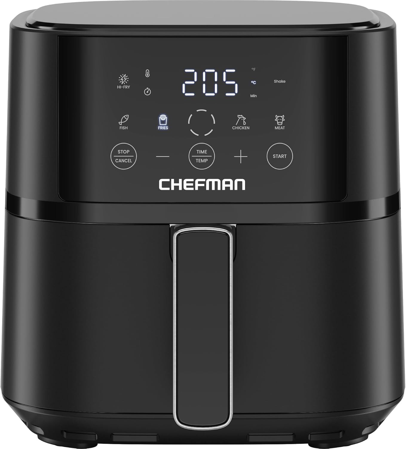 Chefman 5.7L Air Fryer, Touch Controls with 4 Presets, Compact Air Fryer with Hi-Fry Technology for Extra Crisp, Quick & Easy Meals, Nonstick & Dishwasher Safe Basket, Black