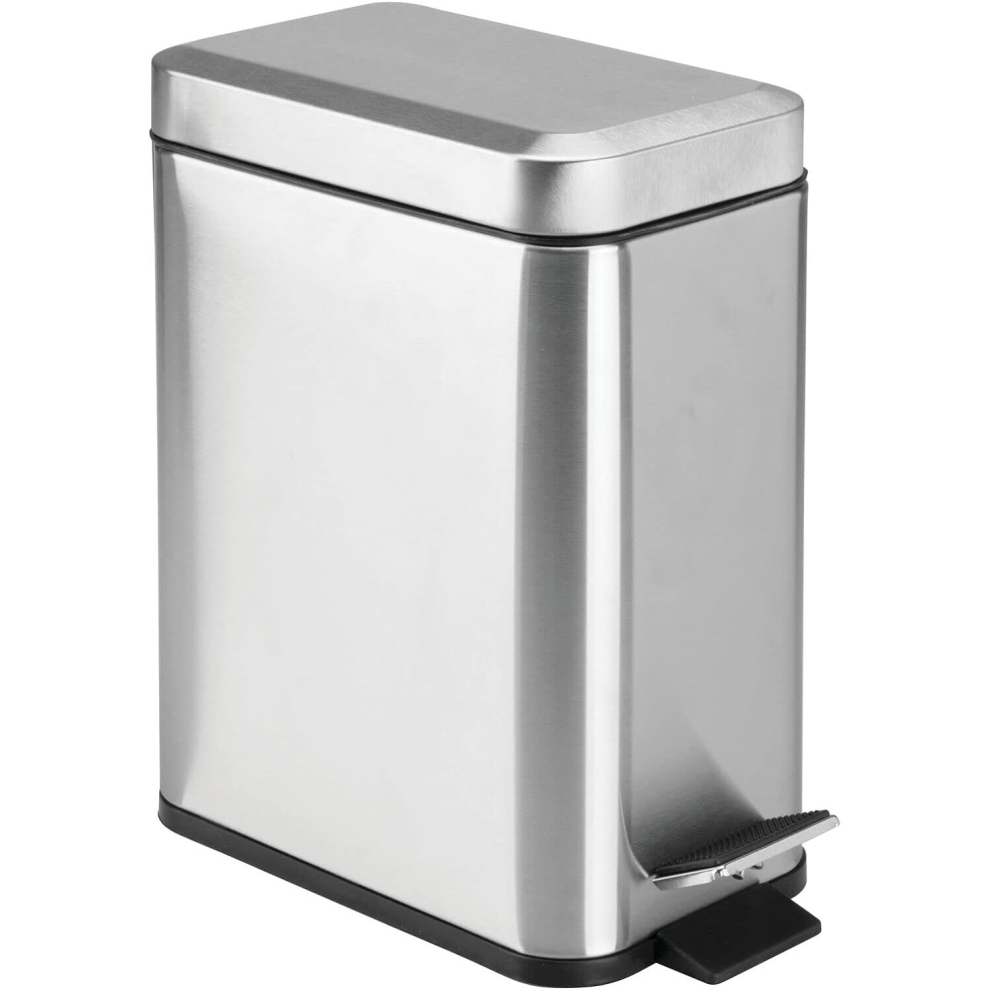 Rectangular Metal Step Bin with Lid, Compact Bin with Removable Liner Bin and Handle for Bathroom, Kitchen, Craft Room - Brushed Chrome