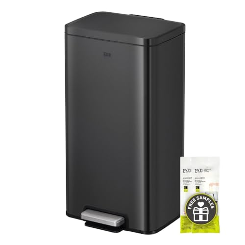 EKO Madison Kitchen Trash Can 30L with Pedal | Stainless Steel Anti-Fingerprint and Soft Close | Compact Waste Bin with Bags Included | Elegant and Robust Design