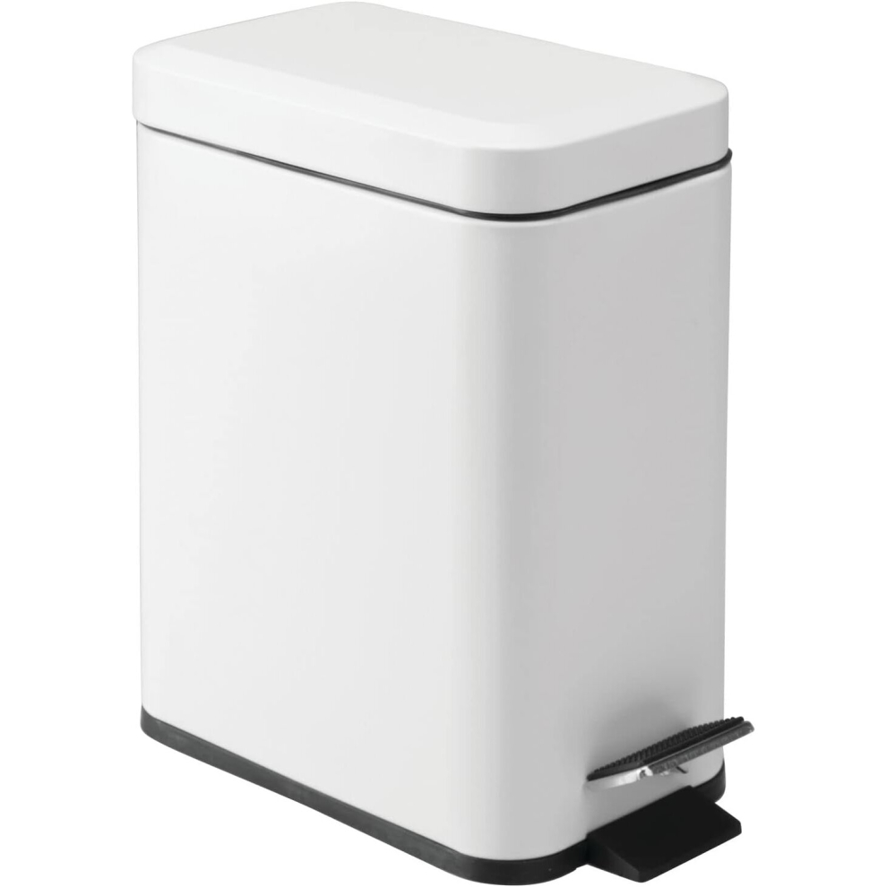 iDesign Compact Bathroom Bin, Slim Plastic Bin for Bathroom, Bedroom or Office Waste, Durable Bin with Sleek and Elegant Design, White, 26.8 cm x 14.0 cm x 24.8 cm