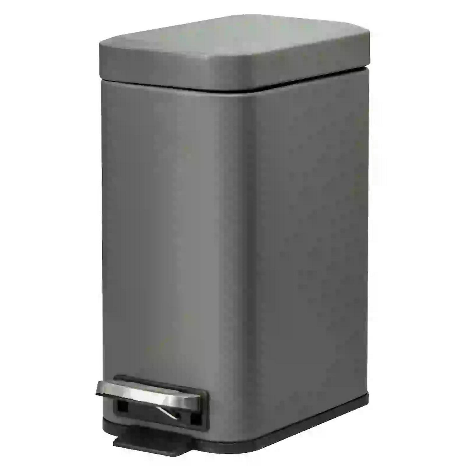 HOMCOM 5L Rectangular Compact Bin Steel Body Removable Bucket Quiet-Close Lid w/Pedal Lid Rubbish Trash Can Home Office Bedroom Bathroom Living Room Garbage Tidy Clean Grey