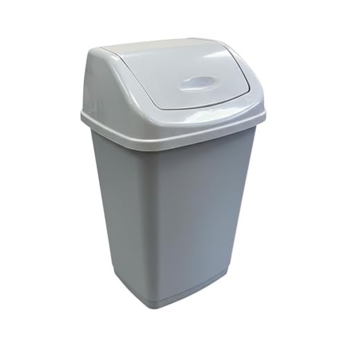 Chabrias Ltd 25L Swing Top Bin - Grey Plastic Rubbish Bin with Lid for Kitchen, Bathroom, Office & Utility Rooms - Compact Waste Bin with Easy-Clean Design, Removable Top & Odour-Reducing Swing Lid