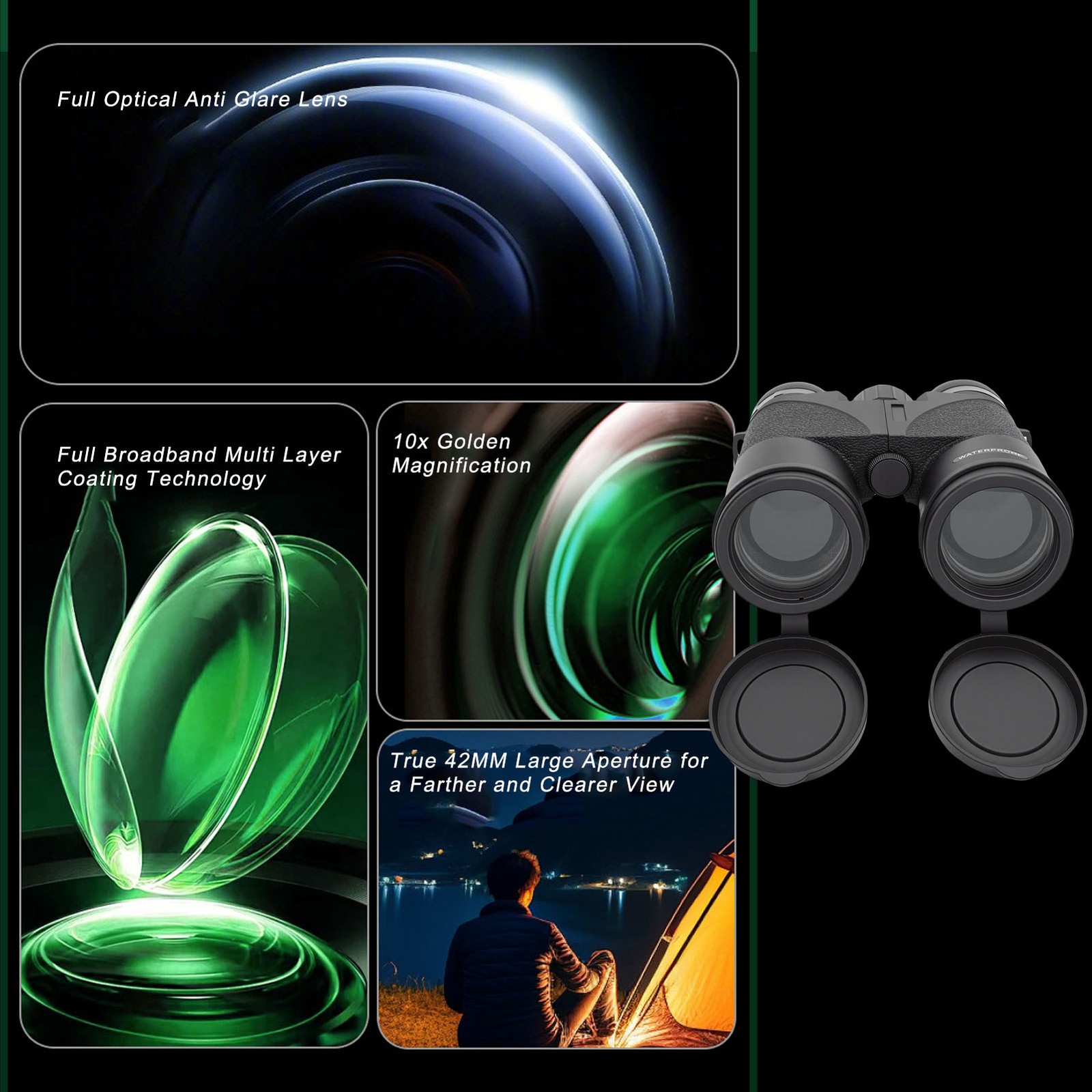 10x42 Binoculars Multilayer Coating HD Compact Binoculars For Travel Concert SG