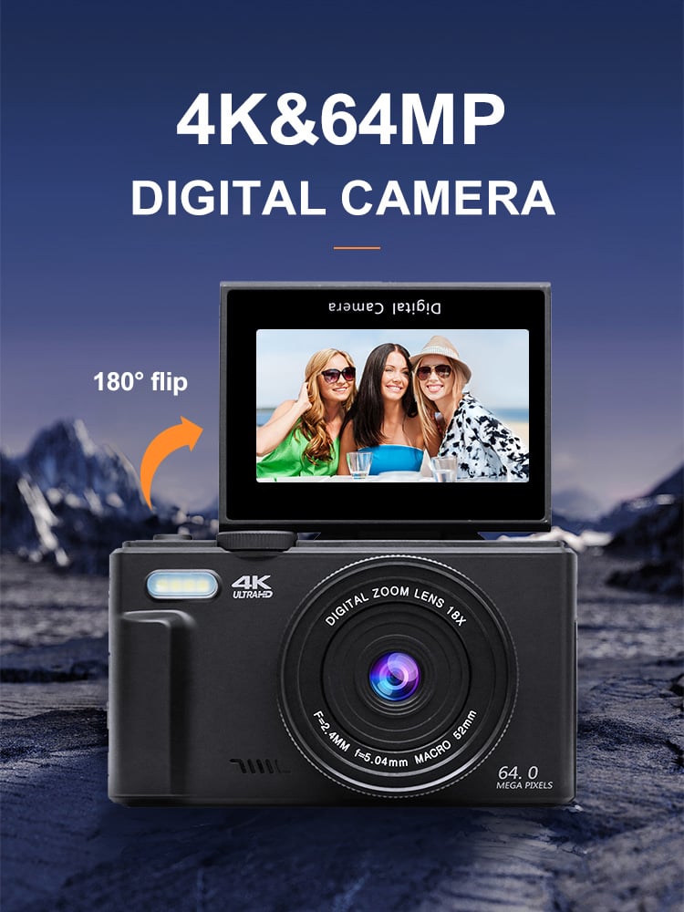 Compact Digital Photography Camera 4K 18X Digital Zoom Vintage Vlog Video Recorder YouTube 180° Flip Screen Selfile With Flash