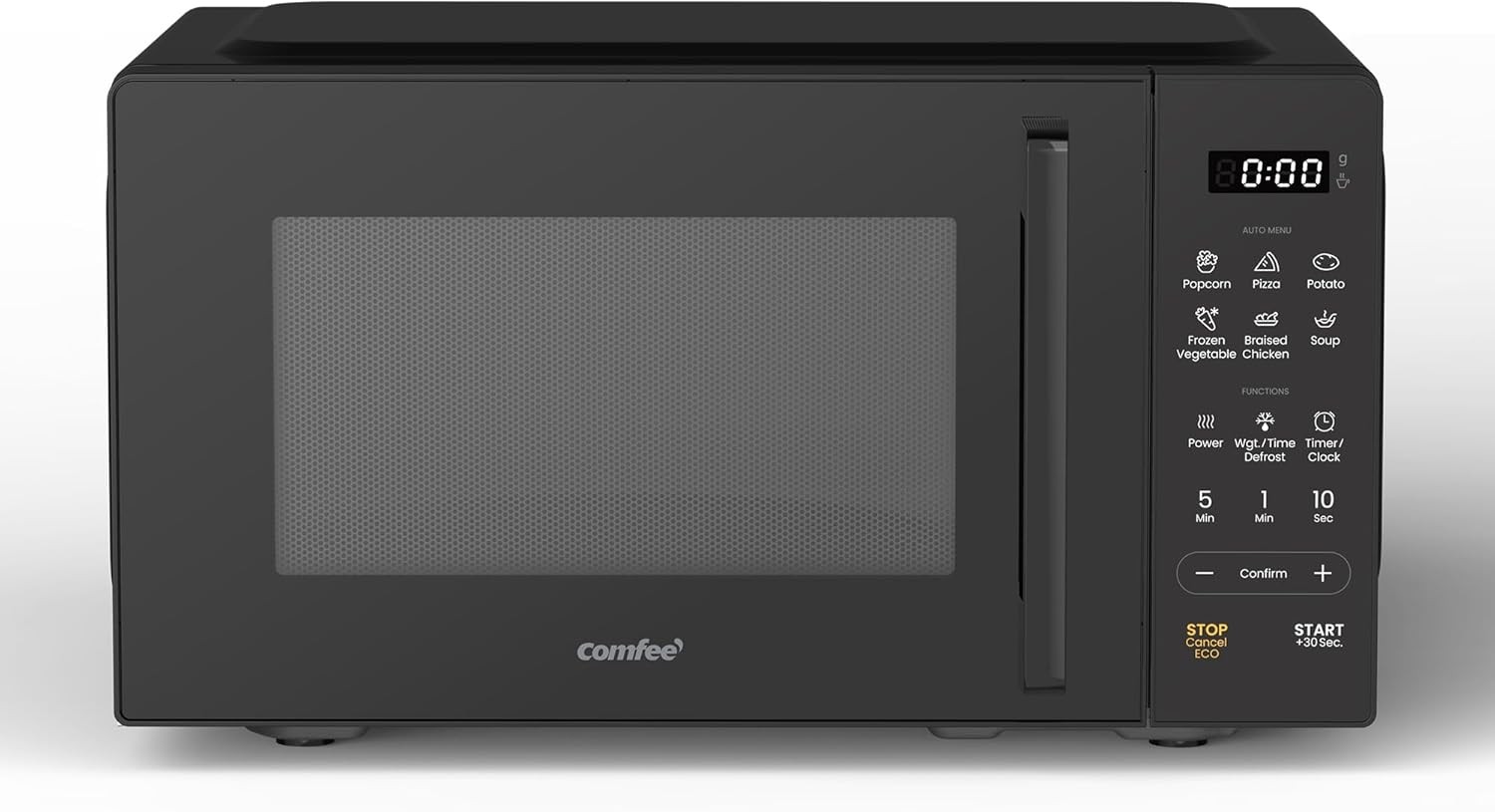 COMFEE' 20L Digital Microwave Oven, 700W Compact Countertop Microwave with Inverter, 6 Auto Menus, Multi-Stage Cooking, ECO Mode, Express Cook, Black - CMO-EM202NF(BK)