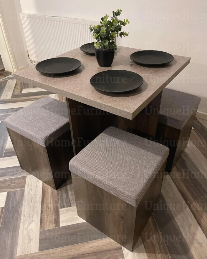 Compact Dining Table and Chairs Space Saving Kitchen Grey Set 4 Small Stools