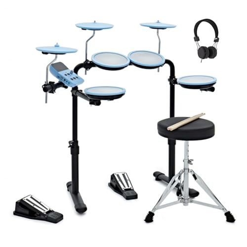 VISIONDRUM 7-piece Mesh Compact Electronic Drum Kit for Beginners with Accessories, Blue