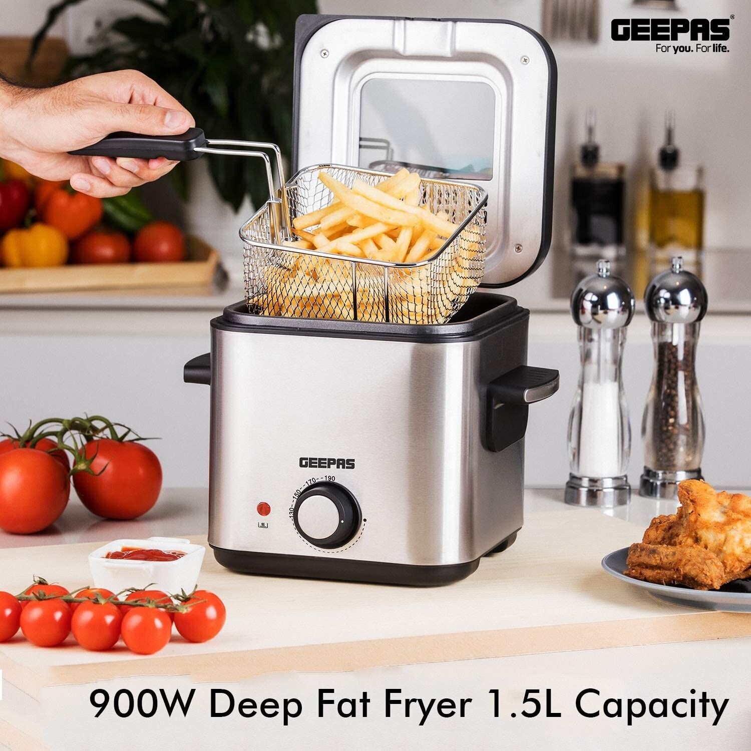 900W Deep Fat Fryer 1.5L Litre Chip Pan Basket Non Stick Oil Compact Brushed