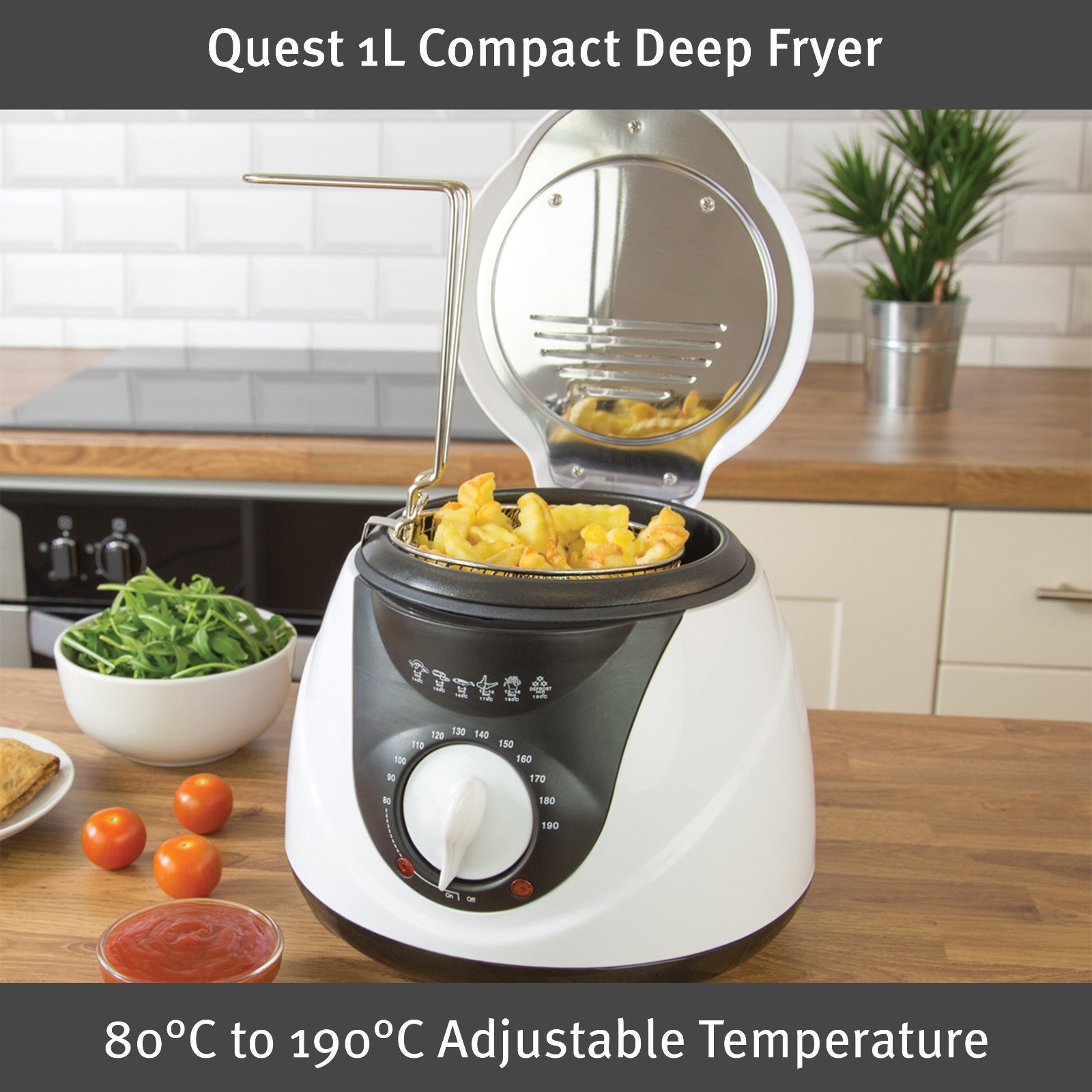 Quest 35150 1L Compact Deep Fat Fryer / Non-Stick Basket With Removable Handle