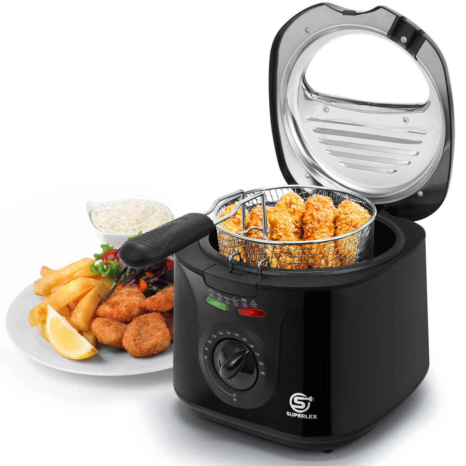 SUPERLEX 2L DEEP FAT FRYER BASKET COMPACT SMALL KITCHEN FISH CHIPS W/ THERMOSTAT