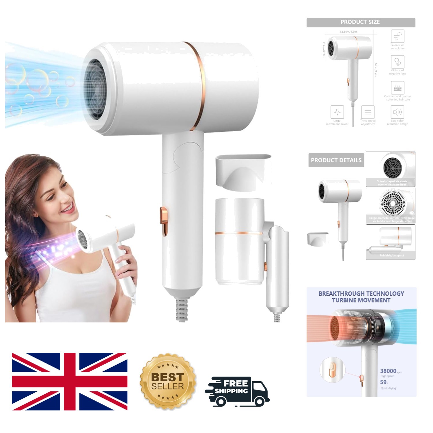 Compact Ionic Travel Hair Dryer - Fast Drying, Noise Reduction & Foldable Design