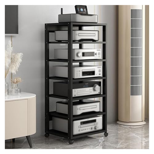 7-Tier HiFi Rack, Wood & Steel Audio Tower with Adjustable Shelves for Turntables & Stereo Systems & Compact System,50 x 40x131 cm(Black)