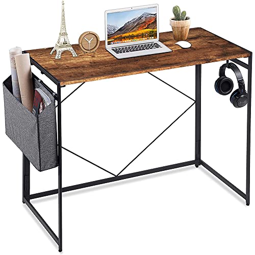 Homesbrand Folding Computer Desk, Compact Office Desk with Storage Bag, Small Writing Study Desk & Workstation with Headphone Hook, Modern Laptop Table for Home Office Bedroom (100x50x75cm)