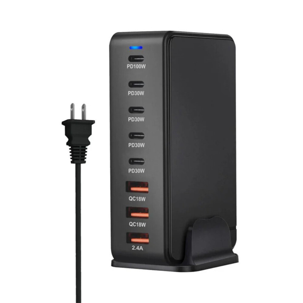 (Black, US Plug) 268W Desktop Charger Station with 3 USB-A & 5 USB-C Ports, Fast Charging for Mobile Phones, Compact & Durable Design