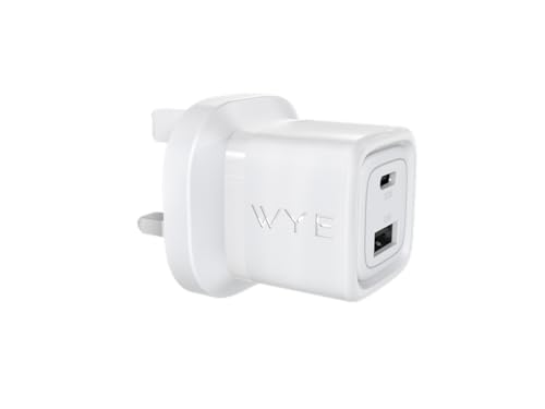 WYE 32W Dual Port USB-C & USB-A Power Adapter, Fast Charging PD Technology, UK Plug, Compact Charger for Phones & Tablets – Available in Black & White (White)
